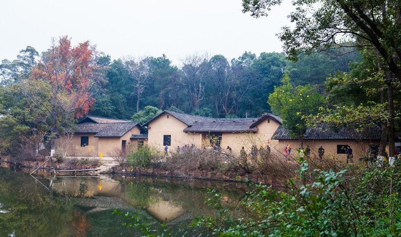 位于中国湖南省宁乡市花明楼炭子冲。1898年11月24日, 刘少奇诞生于此,并在此度过了童年和少年时代。故居在一座盖有茅草的栅栏门内的四合院中。为土木结构,泥砖墙上粉饰着糠壳泥,屋面是一半小青瓦、一半茅草。门前有清澈的池塘,屋后是山峦。刘少奇1916年去长沙读书以后,寒暑假回家居住。1961年5月,他回家乡进行调查研究工作时,曾在此居住一周。文化大革命期间,故居被毁坏。1980年对故居按原样进行了修复。当年的卧室、书房、开调查会的横堂屋内展出了实物、照片数百件,重新对外开放,供人瞻仰参观。刘少奇故居是一栋坐东望西、土木结构的内套四合院式房子,整栋建筑中间有3个天井,占地面积近800平方米,有茅瓦房30多间,建筑面积300多平方米,而属于刘少奇家的房子有21间半,余为刘少奇伯父家的房子。故居前面有一口水塘,房后有一抹低山,整个故居被一片郁郁葱葱的树林年环抱。故居正门悬1980年邓小平同志题写的"刘少奇同志故居"匾额。堂屋内陈列一本清朝同治十年的历书和1961年5月刘少奇、王光美在故居的合影。由堂屋向南至刘少奇二哥刘云庭的卧室,摆放着书、床、太师椅等,还挂有一张刘少奇与刘云庭、刘允斌、刘爱琴、刘允明的合照。向里行即至刘少奇的卧室,室内摆放着书、床、太师椅等,刘少奇1961年5月回故乡时曾在此住宿办公。出此卧室可至酒房,这是刘家以前储酒、卖酒的地方。由酒房向东,至刘少奇大哥刘墨卿的卧室。与刘墨卿卧室并列的是刘少奇父母的卧室,有床、床头柜、书桌、板柜、梳妆台等。刘少奇的父亲刘寿生1910年病故,刘少奇母亲1931年病故。客厅是一间横堂屋,有香烛柜、八仙桌、条凳等。邻横堂屋的是刘少奇三哥刘作衡的卧室。值得一说的是,刘少奇的故居专设有书房,足见刘家对子女读上书的重视。此外,还有农具室、烤火屋、牛栏屋、猪栏屋等。刘少奇故居,在县城东南花明楼区花明楼乡炭子冲屋场。东距省会长沙50公里,南距韶山市毛泽东故居37公里,西距县城30公里,均有公路相通。炭子冲屋场坐东朝西,前临水塘,后倚青山,为土木结构的四合农舍。共计房屋21间半,其中瓦房16间半(正堂屋与邻居各半)、茅屋5间,占地总面积800多平方米,建筑面积300多平方米。从炭子冲屋场外坪入槽门经内坪登阶即为正堂屋。正堂屋往右第一间为刘少奇胞兄云廷卧室。第二间为刘少奇青少年时期的卧室。由此室过酒房为刘少奇父母卧室。出此室便至横堂屋,再依次为烤火房、厨房、碓房及猪栏屋、牛栏屋等杂屋。1959年,湖南省人民委员会公布炭子冲刘少奇旧居为省级重点文物保护单位,颁发“刘少奇同志旧居”木质红底金字匾额悬于槽门门楣。同年,炭子冲屋场旧居对外开放。1961年,公共食堂解散,社员住房拥挤,刘少奇决定将旧居房屋及桌、凳、锅、灶、仓库全部分给社员。 “文化大革命”初期,炭子冲屋场横遭破坏,文物散失。 1966年10月历1日被封闭。1980年2月,中共十一届五中全会为刘少奇冤案彻底平反昭雪,中共湖南省委与宁乡县委立即修缮故居并收集失散文物, 当地群众纷纷献工献材。同年3月5日,故居对外开放。1982年冬,中共中央军委主席邓小平题写:“刘少奇同志故居”匾额。1988年1月,国务院公布炭子冲刘少奇故居为全国重点文物保护单位。 1959-1990年,故居曾经四次整修。1998年12月,刘少奇100周年诞辰纪念活动在此隆重举行。