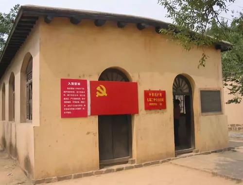 七届二中全会会址位于中央大院的西北角,是中央工委自己动手建造的大伙房。七届二中全会召开前,将这里临时布置成会场。1949年3月5日至13日,具有伟大历史意义的中国共产党七届二中全会在这里召开,会议提出促进革命迅速取得全国胜利和组织这个胜利的各项方针;说明了在全国胜利的局面下,党的工作重心必须由乡村转移到城市;规定了党在全国胜利以后,在政治、经济、外交方面应当采取的基本政策,指出了中国由农业国转变为工业国、由新民主主义社会转变为社会主义社会的发展方向。为永葆党的先进性,中央还提出了著名的“两个务必”、“六条规定”,要求全党永远谦虚谨慎,不骄不躁,艰苦奋斗。