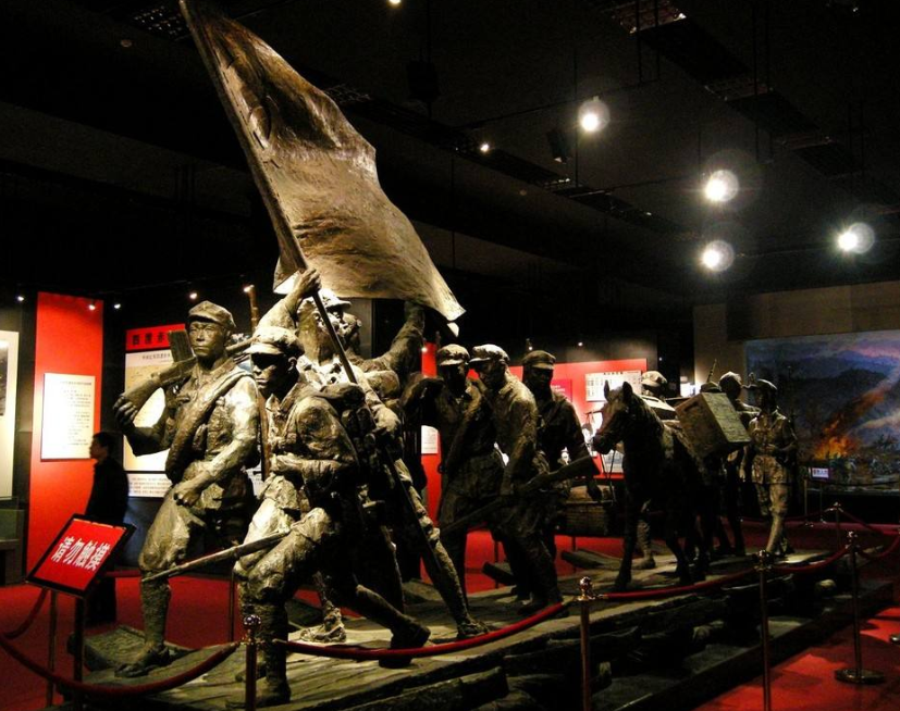 第四部分:勇往直前 走向胜利。位于陈列馆二楼右侧展厅,介绍了长征中各路红军将士,以革命理想高于天的坚定信念和不畏艰难困苦的英雄气概,突破了敌重兵的围追堵截,征服了极其恶劣的自然环境,巧渡金沙江,强渡大渡河,飞夺泸定桥,战胜了张国焘分裂党的活动的危机,纵横十余省,长驱数万里,胜利到达陕甘宁地区,实现了红军主力的大会师。红军长征的胜利,实现了党中央北上抗日的战略方针,开辟了中国革命继往开来的光明道路,奠定了中国革命胜利前进的重要基础。该部分用大量图片、文献史料、文物等重点介绍了与红四方面军的策应和长征,懋功会师,与张国焘分裂活动的斗争,红二十五军的长征,红二、六军团的长征,红二、六军团与红四方面军甘孜会师等。该部分还增设了专题展览“征服雪山草地”和“胜利会师”,突出展示了红军指战员不仅要突破国民党军十万军队的围追堵截,还要与险恶的自然环境作殊死斗争的革命信念与意志,翻越了20多座终年积雪、人迹罕至、海拔4000多米的大雪山,奇迹般的走出了荒无人烟、纵横六百里的茫茫沼泽地;专题展览“胜利会师”分别由红二十五军与陕甘红军会师、党中央率陕甘支队到达陕北、三军会师三部分组成,系统的介绍了红二十五军、中央红军、红四方面军以及红二、六军团会师前后的情况。