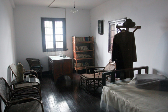 三楼正中一间面积约40平方米,是办事处集体宿舍。朝北的一间面积约12平方米,是董必武的工作室兼卧室。