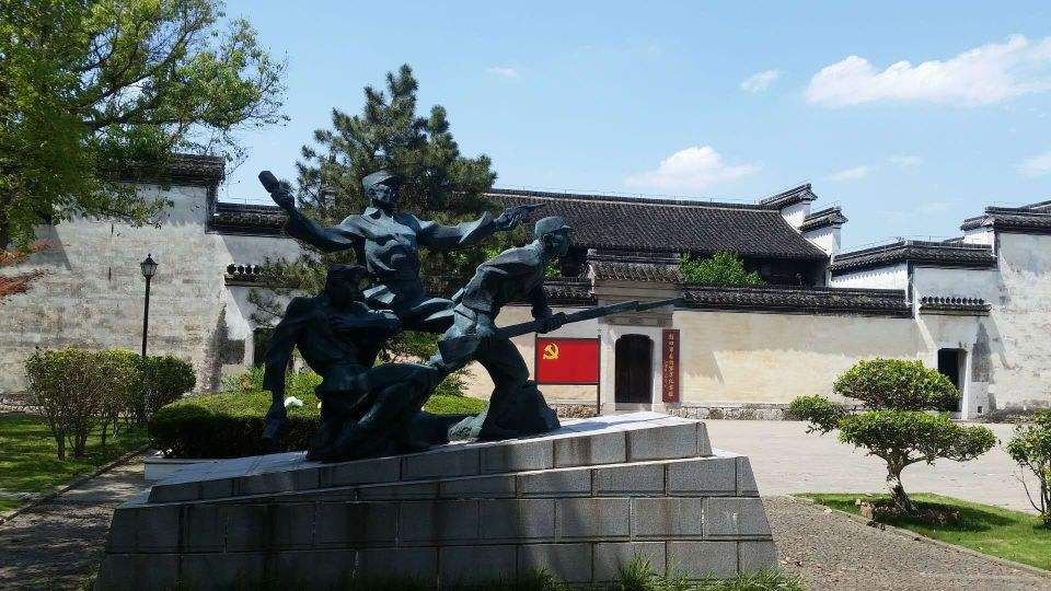 新四军苏浙军区纪念馆,位于浙江省长兴县城西北槐坎乡温塘村,2001年被列为全国重点文物保护单位。纪念馆原为清代咸丰年间民宅,距今150年历史,房屋建筑呈砖木结构,正屋是一四面高墙前后两进五开间的走马楼,共有房屋46间,建筑面积2000平方米,整个建筑规模宽敞,布局紧凑,构造精巧,雕饰华丽,错落有致。体现清代民宅建筑古朴、庄重典雅的艺术风格。
