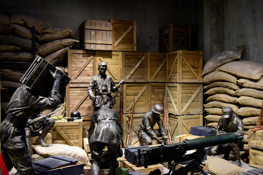 四行仓库抗战纪念馆包括序厅、“血鏖淞沪”、“坚守四行”、“孤军抗争”、“不朽丰碑”及尾厅等六个部分。纪念馆以一封谢晋元在赴淞沪战场前写给妻子凌维诚的家书开篇,展现了以谢晋元为首的“八百壮士”在国难当前之际,舍家为国的家国情怀,展现出对抗战必胜的坚定决心。展览运用实物、雕塑、现代科技等手段再现当年战斗场景,通过图文展板、巨幅绘画等形式展示上海人民投身全民族抗战、共御外侮的历史事实,以及中外各界对“八百壮士”英雄事迹的颂扬和缅怀。.