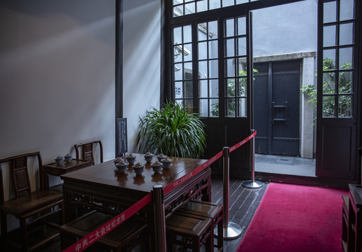 中共二大会址,位于上海南成都路辅德里625号(今老成都北路7弄30号)。1922年7月16日—23日,中共二次大会在此召开。出席大会的有中央局成员、党的地方组织的代表和参加远东各国共产党及民族革命团体第一次代表大会后回国的部分代表。该会址是始建于1915年的石库门民居,曾是时任中央局宣传主任李达的寓所。1959年,中共二大会址被上海市人民委员会确定为“上海市级文物保护单位”。2013年3月5日,由国务院公布为第七批全国重点文物保护单位。2001年建党八十周年之际,二大会址修复,建立纪念馆并于次年对外开放。2003年被上海市人民政府命名为“上海市爱国主义教育基地”。2009年5月,被中宣部命名为“全国爱国主义教育示范基地”。