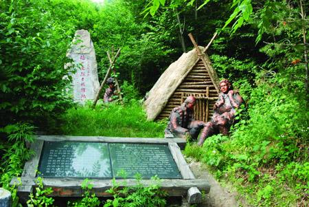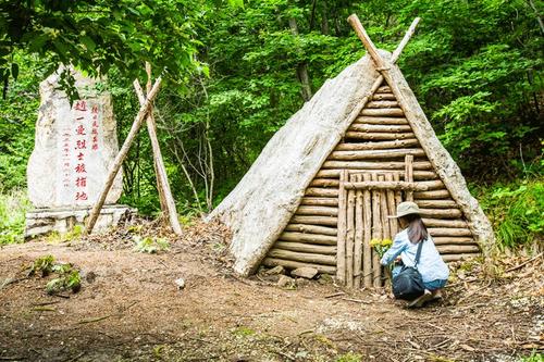 赵一曼养伤窝棚,按照当年的地形地貌和养伤窝棚的真实情形,进行了重新建设,再现赵一曼当年的养伤情景。