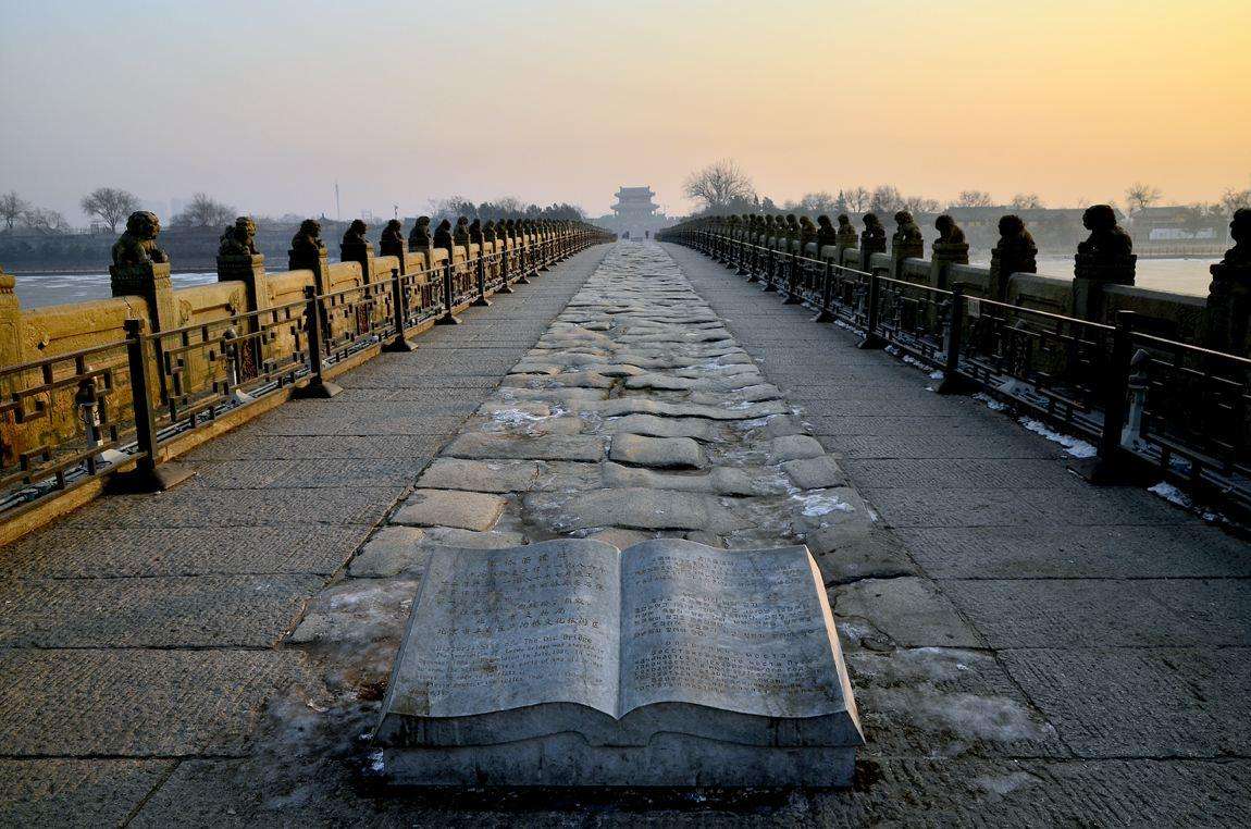早在13世纪,卢沟桥就闻名世界。那时候有一个意大利人马可·波罗来过中国,他的游记里,十分推崇这座桥,说它“是世界上独一无二的”。并且特别欣赏桥栏柱上刻的狮子,说它们“共同构成美丽的奇观”!卢沟桥是在金世宗统治的大定二十八年(1188年)五月,决定修建的。不过当时尚未动工,金世宗就在第二年年初病逝了。卢沟桥始建于1189年六月,明昌三年(1192年)三月完工。两侧石雕护栏各有140条望柱,柱头上均雕有石狮,形态各异,据记载原有627个,现存501个。石狮多为明清之物,也有少量的金元遗存。