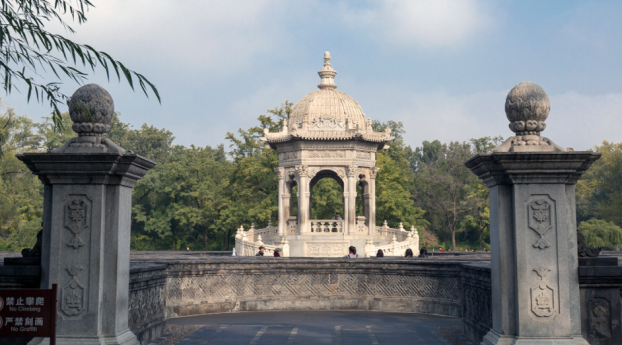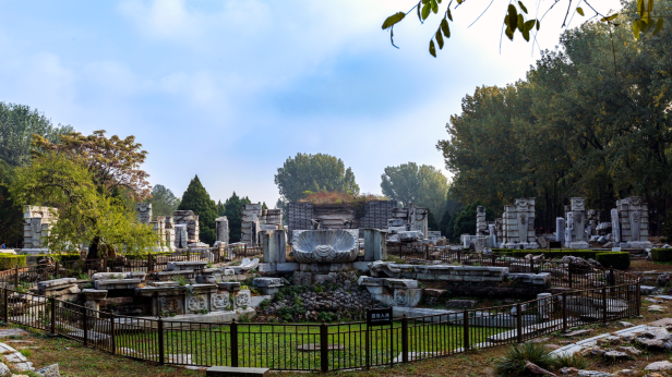 圆明园遗址公园位于北京市海淀区中部偏东,西北去西直门二十华里。其东南角为清华大学西门。圆明园遗址公园为著名的爱国主义教育基地。圆明园遗址公园建成于1988年,仅存山形水系、园林格局和建筑基址,假山叠石、雕刻残迹仍然可见。在“西洋楼”旧址建有园史展览馆,供人瞻仰凭吊。圆明园始建于康熙46年(1707年),由圆明园、长春园、绮春园三园组成。占地350公顷(5200余亩),其中水面面积约140公顷(2100亩),有园林风景百余处,建筑面积逾16万平方米,是清朝帝王在150余年间创建和经营的一座大型皇家宫苑。2019年10月18日,圆明园将迎来罹难159周年纪念日,为铭记历史,让更多的人走进圆明园,纪念日当天圆明园遗址公园将对公众免费开放。