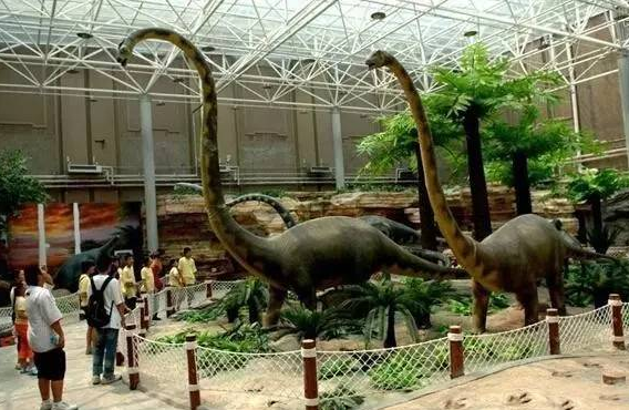 《恐龙公园》展厅,2013年重新启用,共有面积700余平方米。23条活灵活现的恐龙、两只翼龙以及一只和最早恐龙生活在一起的坚喙蜥构成了不同的组合,分别代表了从三叠纪晚期到白垩纪晚期不同时期的恐龙世界的面貌。 [12] 在《恐龙公园》中,北京自然博物馆还增加了恐龙发掘现场。观众可以看到恐龙化石挖掘时候的场面,看到恐龙化石还在岩石中的状况;另外,新《恐龙公园》中还有“热河生物群”和“恐龙时代海洋”两个幻象,展示恐龙世界中的海洋里面的庞然大物。