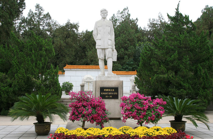 伟大的国际主义战士,加拿大共产党员,诺尔曼.白求恩,是著名的外科医生,为帮助中国人民的抗日战争,他放弃了国外的优越生活,于1938年春天毅然远渡重洋来到中国,奔赴华北抗日前线,在战场上,他以满腔的热忱和高超的医术救治了许多八路军伤员和群众,受到了抗日军民的爱戴和尊重,后来在一次战地手术中,他不幸感染中毒,经医治无效,与1939年11月12日,在河北唐县黄石口村以身殉职,时年49岁。白求恩牺牲后,当时被安葬在河北唐县军城晋察冀军区烈士陵园。1953年3月15日白求恩灵柩迁葬于华北军区烈士陵园。为学习纪念白求恩,1939年12月21日,毛泽东专门撰写发表了著名文章《纪念白求恩》,号召中国共产党人学习白求恩同志伟大的共产主义精神和国际主义精神。白求恩墓位于烈士纪念碑正西方。墓体为方形,墓顶为弧形,坐西向东,汉白玉石碑上刻着“白求恩大夫之墓”七个镏金大字。墓前广场中央高大的花岗岩石座上,矗立着白求恩的汉白玉全身塑像,像高3米,石座正面用中文和英文镌刻着白求恩的的姓名和生卒年。这个墓位景观不仅成为了学习纪念白求恩的重要场所,而且成为中加人民友好的象征,每年吸引大批国内外观众瞻仰拜谒。