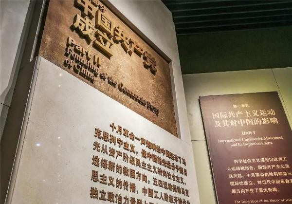 展陈共有3个楼层,一楼和二楼为“开天辟地”单元,包括“探索救亡图存的道路”、“中国共产党成立”和“十三位代表生平事迹介绍”三个部分;三楼则为“光辉历程”单元,包括了“进行新民主主义革命”、“建设社会主义新中国”、“走中国特色社会主义道路”三个部分。