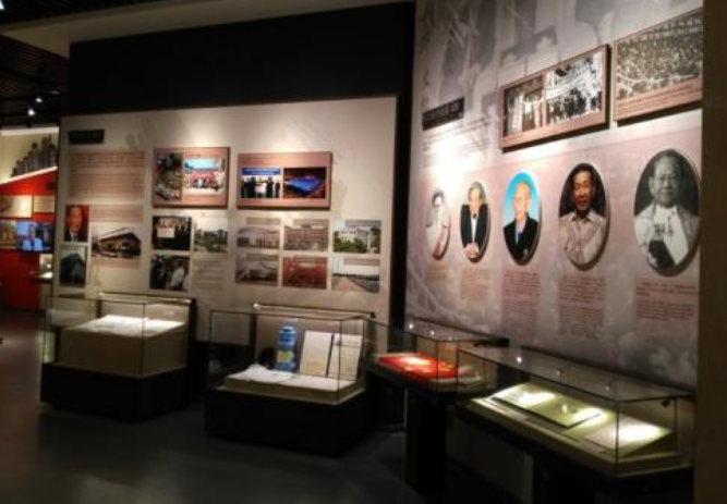 侨从流寓到定居的地点,他们的落地开拓之处。大厅中一艘艘仿制古代帆船模型,也揭示了华侨先祖漂洋过海谋生的辛苦历程,见证了契约华工的悲惨命运。两侧展橱的图片、资料,展示华侨走向世界的历程。