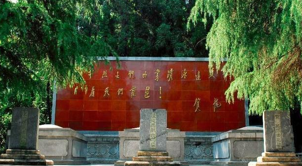 从纪念碑向上走到山顶,便是安葬着段德昌、王炳南、贺英三位革命烈士忠骨的主墓群。主墓群静贮于万年青、雪松丛中,汉白玉大理石等雕花装点其间,显得格外庄严肃穆。主墓的后面是由贺龙元帅题写的“革命烈士们的事绩永远鼓舞着我们前进”的汉白玉大理石屏风,点明了陵园的主题。