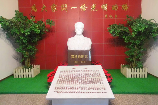 长汀县2005年开始筹建瞿秋白烈士纪念馆,现建成的瞿秋白烈士纪念馆占地580平方米,建筑面积990平方米,分凄凉家世、传播真理、力挽狂澜、一代文豪、奔赴苏区、傲霜雄魂、诸夏怀霜等八个部分,展出瞿秋白烈士一生的光辉事迹,展线全长120米,展出图片200张,书籍50本,实物(复制品)30件,半身雕塑一座及创作画(国画、图画)4幅,并配备放映厅。建成后的瞿秋白烈士纪念馆,与瞿秋白烈士纪念碑、瞿秋白烈士就义地联成一体,游客来到这里,可以瞻仰瞿秋白烈士纪念碑和烈士就义地,接受一次爱国主义教育。