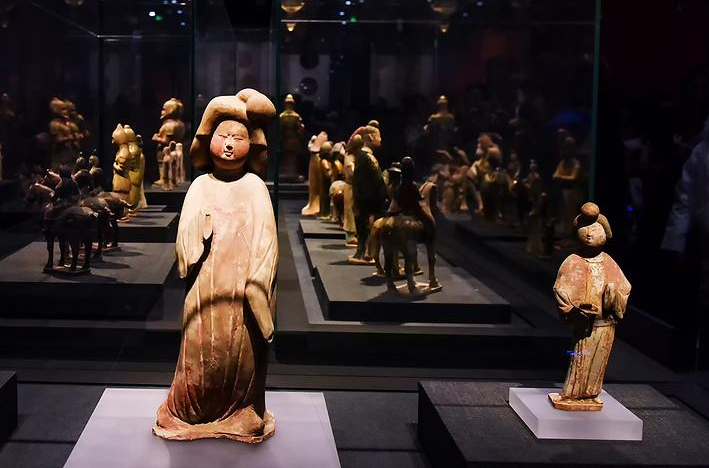 由于得天独厚的优势,陕西历史博物馆所藏古代陶俑种类多、数量大、等级高,而且产生演变的序列完整,在中国博物馆极为少见,尤其是天真古拙的汉代陶俑和雍容大度的唐代陶俑最为著名。