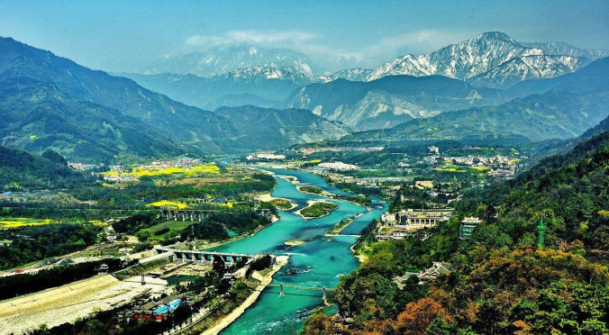 都江堰灌区是四川省经济最发达的地区,也是四川政治、经济、文化的中心地带。“物华天宝,地杰人灵”,历史上有“天府之国”的美誉。灌区内自然景观,人文景观,都市华彩及城镇风光,异彩纷呈,美不胜收。灌区水利,星罗密布,各展风韵,各具特色,令人赏心悦目,“人民渠、东风渠、三合堰、通济堰,碧水荡伯;黑龙滩、三岔湖、鲁班水库,湖光涟滟;龙泉洞穿,天工开物,灵水泉涌”。全灌区呈现出“长龙地上走,银河天际流;彩虹起深谷,高峡出平湖”的壮丽图景。