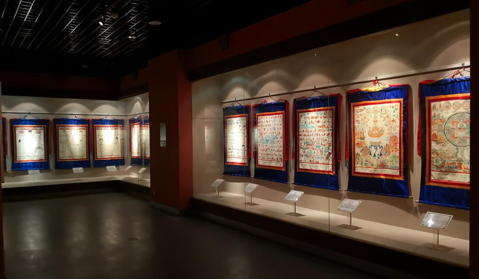 曼唐器械展厅展出的80幅唐卡,为医药学历史上绝无仅有,在世界医药学史上亦属罕见。通过这些唐卡和传统藏医使用的180多件外科手术器械,系统而直观地介绍了藏医药学理论及其实践技术。这种独创的、以画卷形式进行医药教学的挂图和1300多年来使用的医疗器械,再现了2000多年前藏医就已广泛应用于临床实践的外科手术。尤其以照片的形式,介绍了数千年前藏医就进行过的穿颅术,不仅显示了藏族先民的聪明和智慧,也充分证明历史悠久的藏医学外科手术技术的高超与精湛。