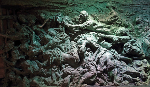 据不完全统计,大轰炸期间,重庆直接人口伤亡超过4万,财产损失超过100亿元(折合1937年法币)。历史的伤痕还在,历史的教训还在。重庆市民防办在渝中区磁器街设立了重庆大轰炸惨案遗址纪念设施,遗址屋顶,是一圈拥挤的人物雕塑,人物双目圆睁,双手抓破衣服,扯裂喉咙,撕心裂肺般张口吐舌,这表现的便是“六五”大隧道惨案中的惨状。