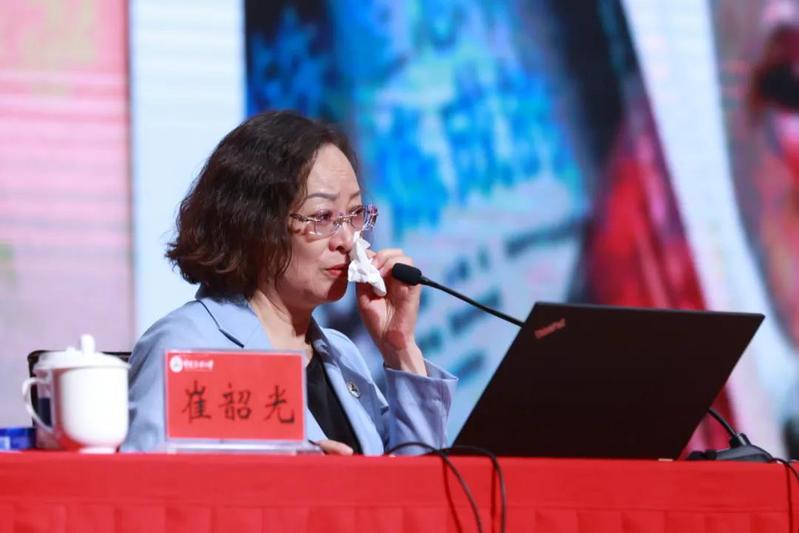 崔韶光教授的报告主题鲜明、内容丰富、史料翔实、饱含深情,报告过程中,她几度哽咽,师生热泪盈眶,多次报以热烈的掌声。