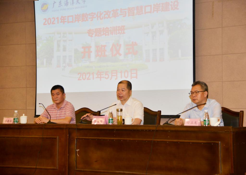5月10日上午,2021年口岸数字化改革与智慧口岸建设专题培训班在南疆宾馆会议室顺利开班。宁波市人民政府口岸办公室张海智副主任、广东海洋大学继续教育学院安立龙院长、培训班67名学员及相关工作人员参加开班典礼。开班典礼由继续教育学院副院长潘康培主持。