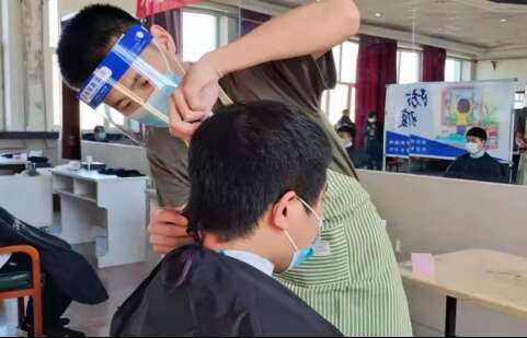 “我是抱着试试看的心态来的,没想到剪完效果这么好,很满意,非常感谢学校的‘理发天团’!”——被老师和同学理发,可能是很多在校大学生从未有过的体验。为了满足校园封闭管理期间同学们的理发需求,学生工作部组织了大学生义务理发服务队,利用课余时间,免费为在校学生理发。预约、排队、测温、登记、消毒、落座,随着碎发的不断落下,20分钟左右,一个精神整洁的发型便出现在镜子中。园艺园林学院研究生豆志滔提到自己的剪发经历依然兴奋不已,“虽然不止一次体会到了老师们无微不至的关心和关爱,但每一次,仍会让我深感荣幸,也深为感动”。这项服务举措刚推出两天,就有200余名同学在线上进行了预约。作为“Tony老师”之一苏吉龙来自大学生退役士兵队,在军营里练就了熟练的理发技能,“能为同学们做一些力所能及的事情,既促进了大家的互帮互助,也让我们在劳动中收获了不一样的体验”。以技艺抗击疫情,一推一剪皆温暖。