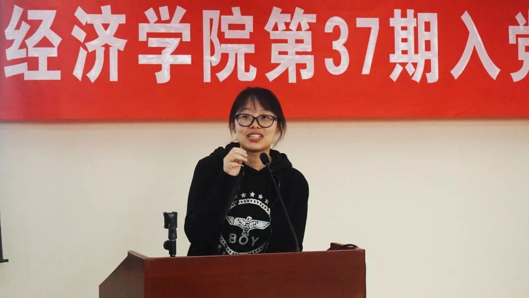 程万昕老师为本次理论知识竞赛致辞。程老师围绕主题“常学常新,加强理论修养;真学真信,加强理想信念”,以及经济学院第三十七期入党积极分子培训班中各位老师的精彩讲授发言。程老师提到,当今国家发展是多样性的,党的理念也随着时代的发展而改变,作为积极分子,学员们加强理论学习是第一位的。希望学员们能够跟随时代的变化,不断加强理论学习,提升自己的理论学习修养,传承经济学院注重理论学习的传统。同时,程老师对本次活动的形式创新给予肯定,希望学员们在相对轻松的环境中掌握知识,感受理论学习的乐趣所在,并且收获友谊、收获帮助。