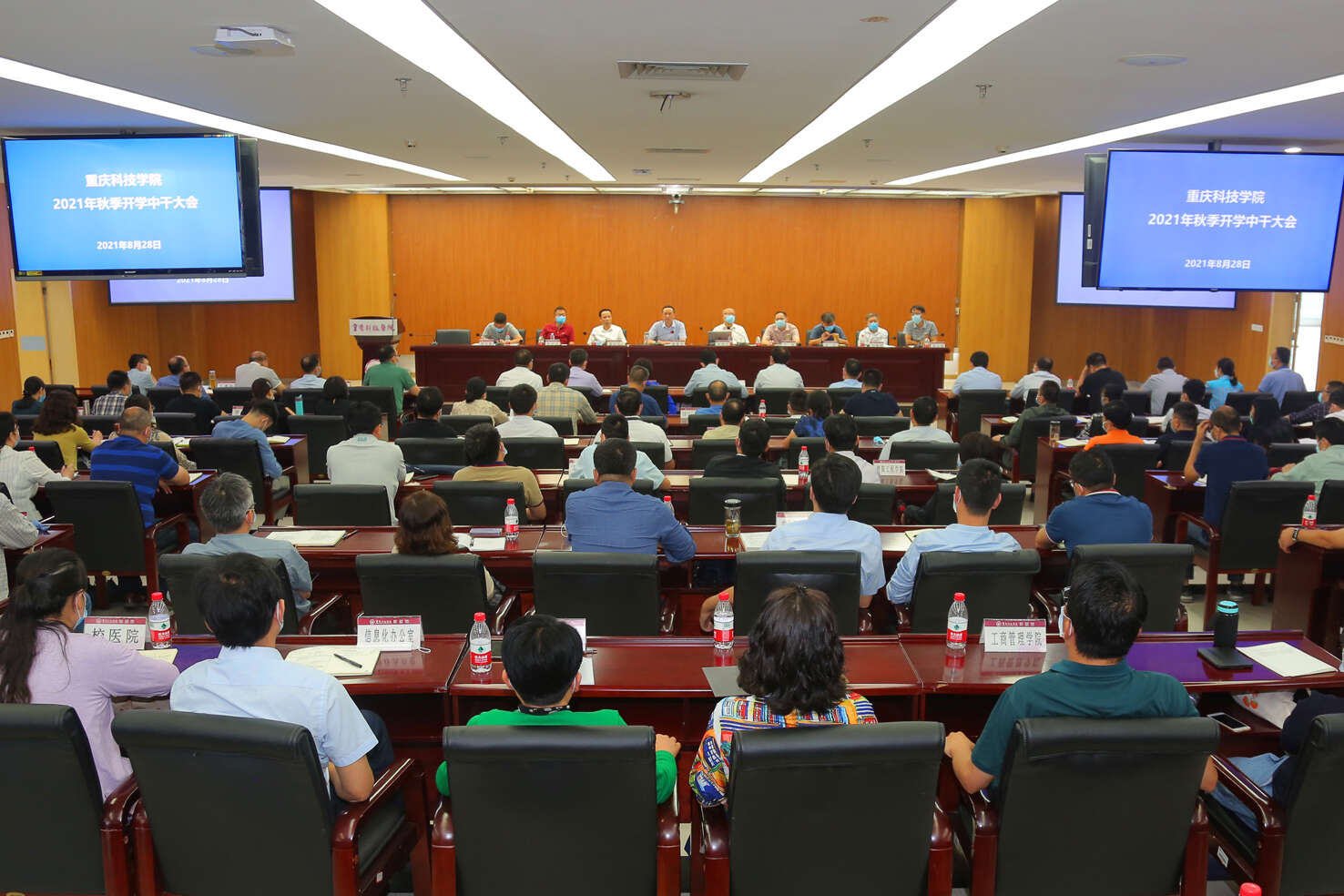 8月28日上午,2021年秋季开学中层公务人员大会在图书馆906会议室举行,全体校领导,全体处级公务人员、组织员、纪检员,安科公司负责人参加会议,会议由党委书记黎德龙主持。