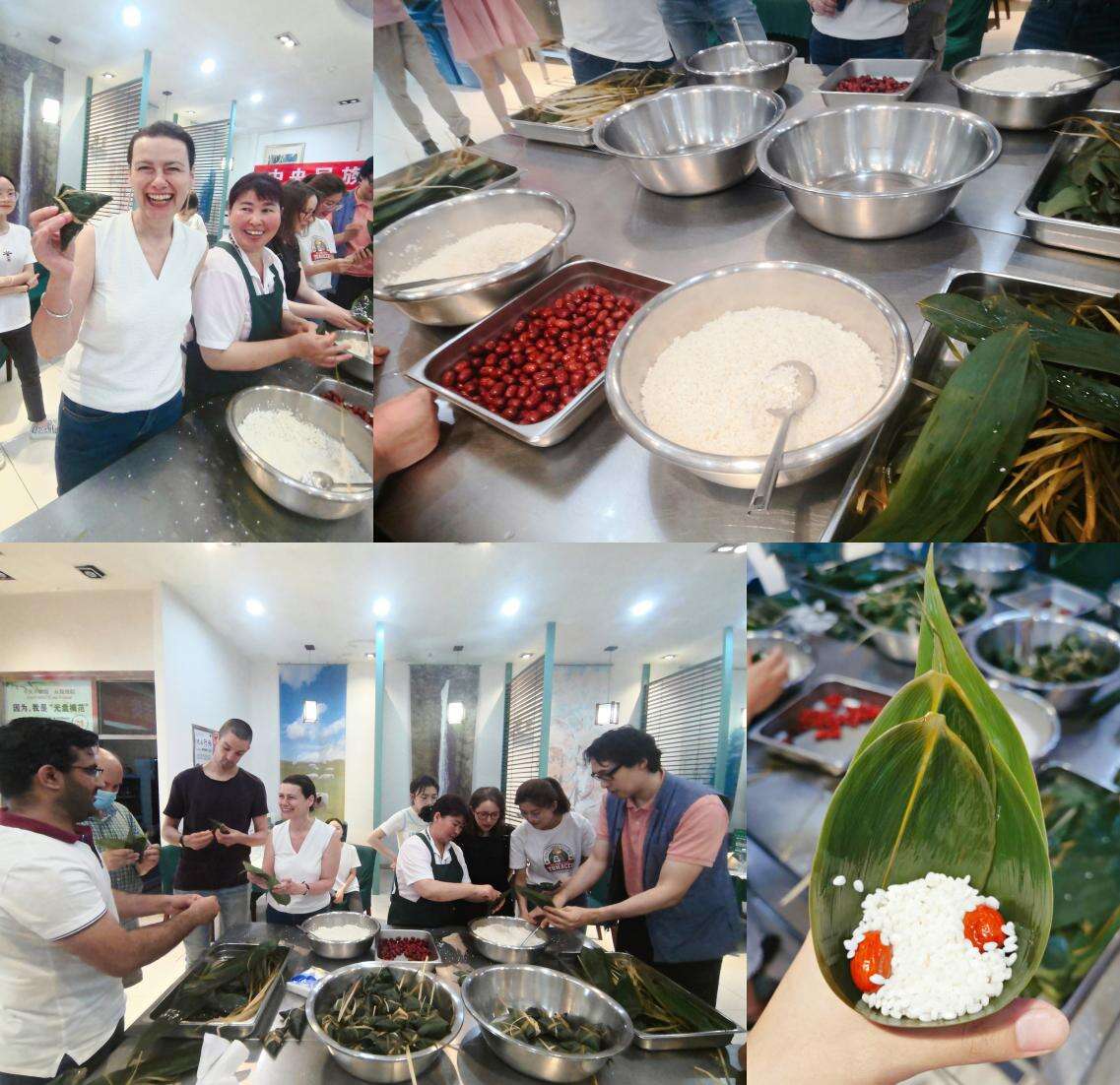步入学校餐厅,中外师生在轻松的互动问答题中探寻端午节的起源,了解古代诗人屈原的故事以及端午节风俗。大家一起动手,青绿的粽叶、雪白的糯米、香甜的红枣在手指穿梭间便包成了一个个可爱的粽子,收获的喜悦洋溢在每个人的脸上,包粽子比赛更是活动推向了高潮。