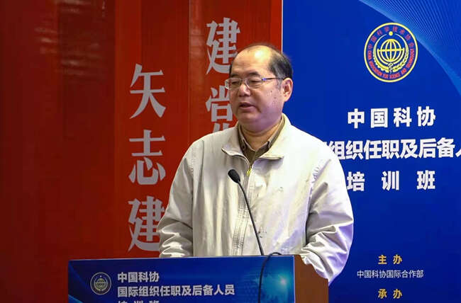 贾文键指出,本期“2021年中国科协国际组织任职及后备人员培训班(第二期)”培训旨在全面提升国际组织后备人才的胜任力,为科技工作者赴国际组织任职、积极参与全球治理和建设人类命运共同体提供智力支持。培训班以培养全体学员“中华情怀、国际视野”为根本出发点,着眼于对学员参与国际组织,特别是科技领域非政府组织工作的能力建设,以开阔学员的国际视野、提升学员的理论水平和提高学员的实际操作能力。他指出,北京外国语大学80周年校庆之际,习近平总书记给北京外国语大学老教授回信,对人才培养提出了新的要求,希望大家积极学习贯彻回信精神,努力成为有家国情怀,有全球视野,有专业本领的复合型人才。
