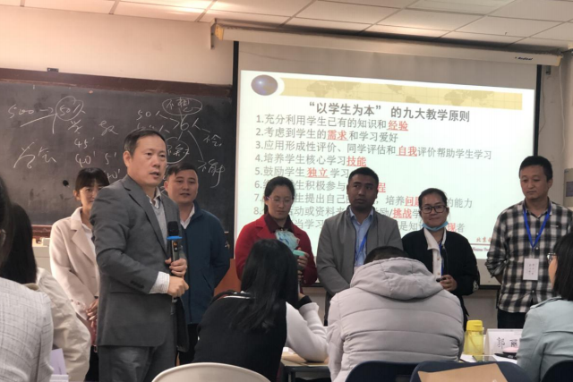 北京教育学院余新教授《以学生为本的教学设计与实施》工作坊以茶杯盒盖倒水的游戏导入,对“学习的五大障碍”“人性的两大障碍”“九大教学基本原则”“三大特征”等相关内容进行具体介绍,利用案例与教学活动相结合的方式,带领教师学员体验教学环节设计的重要性,强调教学设计的前提必须是以“学生”为本,以“学”为核心,教学设计才更有效。课堂氛围生动鲜活,老师们通过理解当前义务教育面临的“以生为本”的政策背景,意识到通过优化教学方式来提升教学质量的要义。