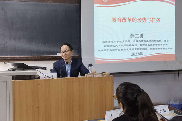 教育部长江学者青年学者、北京师范大学薛二勇教授的《教育改革的形势与任务》专题讲座,结合多元案例带领学员们深入了解当前我国教育改革形势和教育改革的任务,分析教育教学的风向标,并仔细解读了“双减”政策。薛教授围绕学员的困惑开展讲座,为学员们答疑解惑,切实地提出解决思路和方法,并提出教师应提高依法从教的素养和教师依法自我保护的意识。