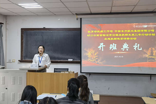 10月9日-18日,教育部教师工作司-中国东方航空集团有限公司助力云南省临沧市沧源县教师发展三年行动计划卓越教师赴京研修活动在北京师范大学圆满举行。北京师范大学继续教育与教师培训学院高级管理者发展中心副主任高子涵、沧源县教育体育局教研员李娇出席本次开班仪式,来自云南省沧源县的50名教师参加培训。