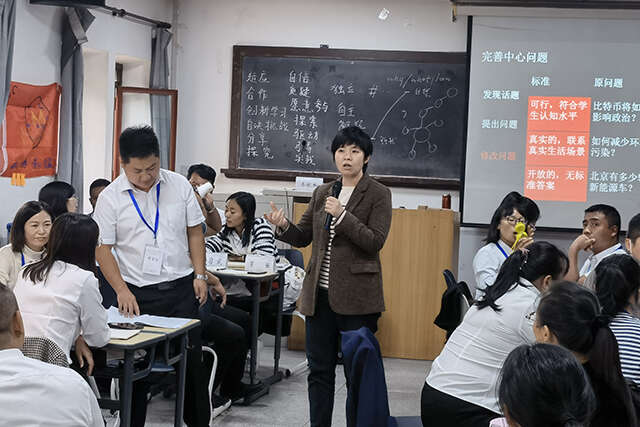 北京师范大学继续教育与教师培训学院高级管理者发展中心秦晓虹主任《项目式学习(PBL)——面向未来人才培养与教师创造性工作》工作坊首先利用问卷调查来了解学员们对于项目式学习的理解,以“能够帮助学生面向未来生存和发展的教育学习应该是怎样的”为切入点,引导学员思考教育应该培养什么样的人,进而带领学员了解项目式学习的背景、概念和意义。工作坊带领教师们以小组合作共同体的方式,通过设计问题、头脑风暴、修改问题、确定问题、教学流程设计等环节让学员亲身实践设计项目式学习课程。秦主任的课堂循循善诱,由浅入深,与学员们积极交流互动。课上学员们热烈讨论,兴趣高涨,主动提问,最后小组汇报项目式设计成果丰厚。