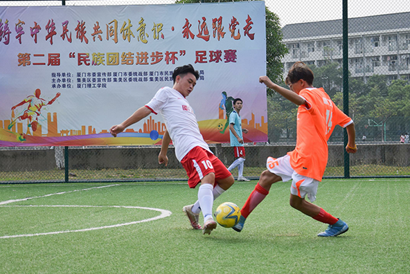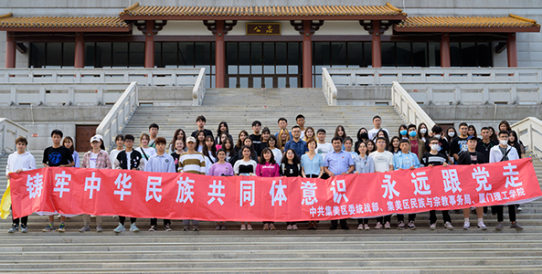 10月20日,厦门理工学院组织师生代表参观集美区人文塔,同学们通过人文馆中高清智慧屏、AR探究镜、AI拍机等高科技、智能化的媒介设备,身临其境地回顾了中国共产党的百年光辉历程,在罗扬才、李林等革命先烈的英雄事迹中感受初心与使命的力量。当天下午举行了民族团结进步杯足球赛,由师生自发组建的新疆学生代表队、西藏学生代表队、汉族学生代表队、教工队四支足球队伍举行了五人制足球友谊赛,大家以球会友,展示了团结、拼搏、进步的竞技风采和精神风貌。