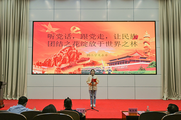在10月27日举行的演讲竞赛中,10位选手以“感党恩、听党话、跟党走”为主题,关注“身边人、身边事”,讲述民族团结进步的先进典型和感人事迹,传播民族团结进步的好声音、好故事。哈萨克族学生吐努克·乔汗是本次演讲比赛一等奖获得者之一,她说:“很感谢学校开展此次活动,在个人能力得到锻炼的同时,也让我们进一步加深了对党的民族政策的了解,认识了很多小伙伴,增强了民族团结的意识和责任感。”