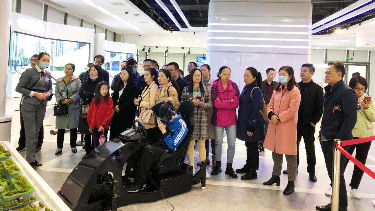 在讲解员的介绍当中,大家了解到重庆仙桃数据谷的建设充分结合党的“十九大”精神,深入贯彻国家关于“实施国家大数据战略加快建设数字中国”的重大部署,围绕国家临空经济示范区战略定位,以数据为驱动、软件为基础,布局“1+3+5+10+N”创新生态圈,“1”即大数据,“3”即物联网、集成电路设计、人工智能,“5”即重点发展智能汽车、智能终端、生命健康、软件信息、数字城乡等5大产业,“10”即建立外观设计、全套3D打印、智能样机生产、软件系统开发、集成电路综合服务、类脑技术、智能硬件检测、仙桃学院人才培养、人工智能技术和智能汽车协同10个开放共享平台。“N”即N个创新企业集群,围绕3大核心领域关键技术和5大产业领域,建立由N个企业组成的大数据产业链、价值链和生态系统。