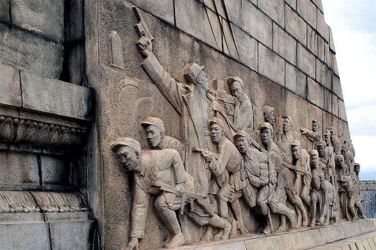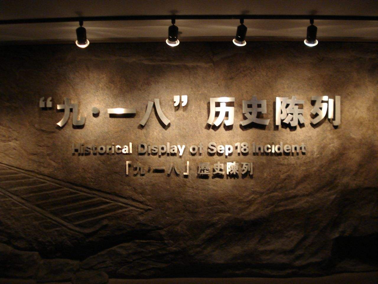 专题培训班“九·一八” 历史博物馆馆内的“九·一八”事变纪念碑,为砖石水泥筑成的空心体,纪念碑从平面上看其形状是一幅巨大的东北地图,前方有一几何形的广场,底座四周为不规则的绿色草坪所围绕,整个建筑高十八米,宽三十米,厚十一米,用混凝土铸成 ,花岗岩贴面,呈立体台历状,两边对称,上面布满弹痕与骷髅,台历的左面刻着“1931年 9月18日”,右面记录着事变的发生过程。